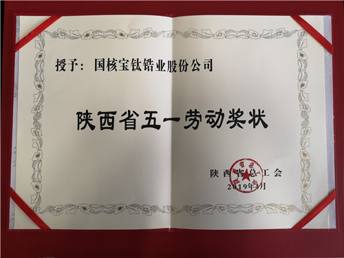 國(guó)核鋯業(yè)榮獲陜西省五一勞動(dòng)獎(jiǎng)狀