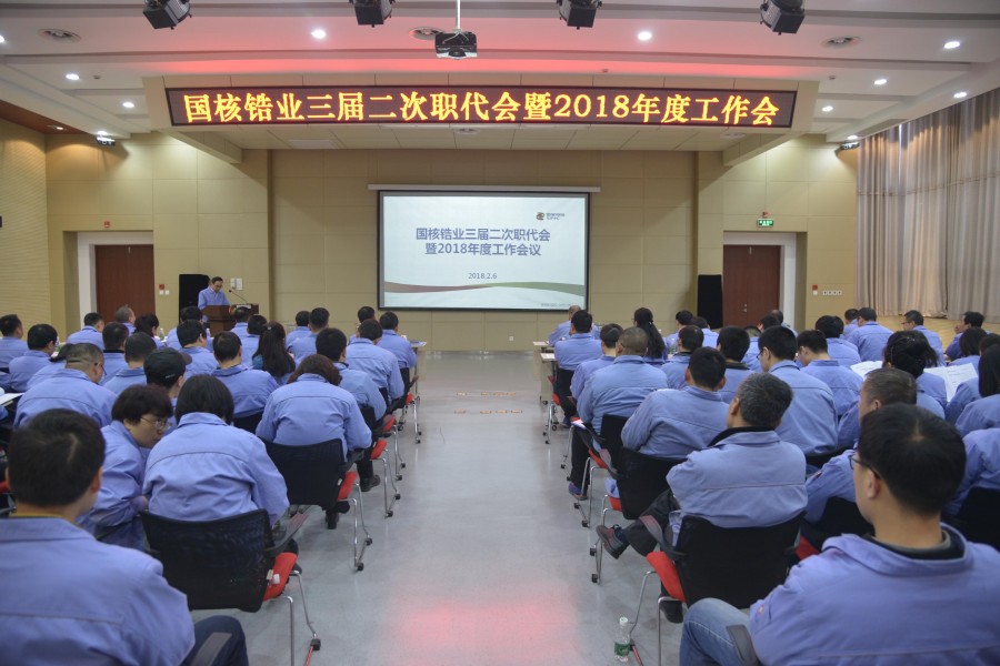 會議期間,各位代表以對公司高度負責的態度,認真聽取并審議了《公司2018年行政工作報告》、《2017年財務決算和2018年財務預算報告》和《公司2017年度招待費使用情況報告》,聽取《公司2017年度民主評議領導干部報告》和《2017年發布的11項關系員工利益的管理制度運行情況及部分福利項目發放標準調整情況報告》,以及《國核鋯業安全工作報告》和《2017年度提案處理結果報告和2018年度提案征集情況報告》。公司黨委書記、董事長王成立和總經理袁改煥分別與領導班子成員、所屬各單位簽訂了《2018年度績效目標責任書》。