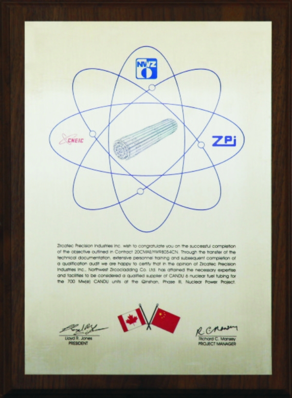 國核鋯業(yè)獲得西屋電氣公司頒發(fā)的AP1000核級鋯材生產(chǎn)線鑒定證書